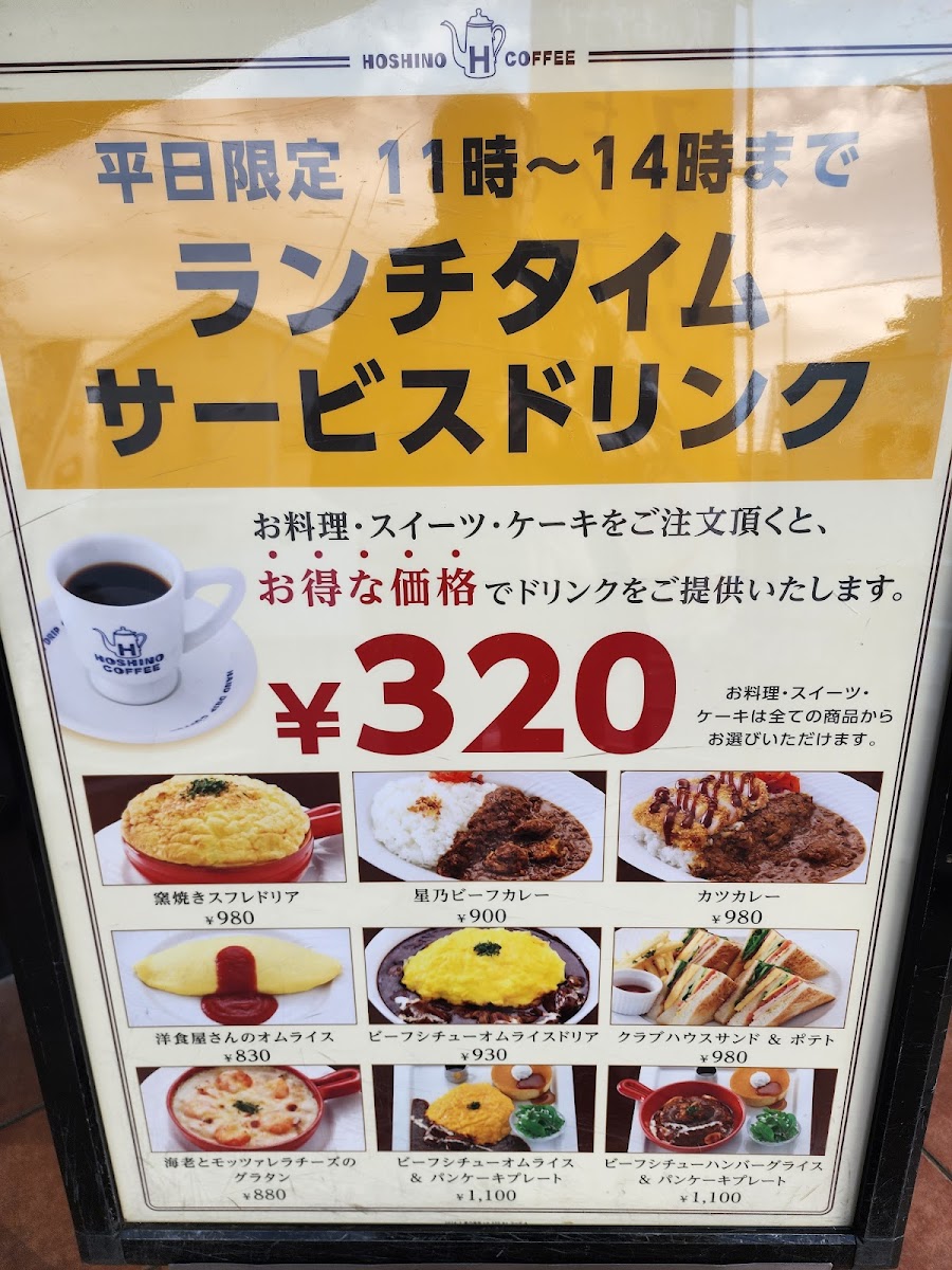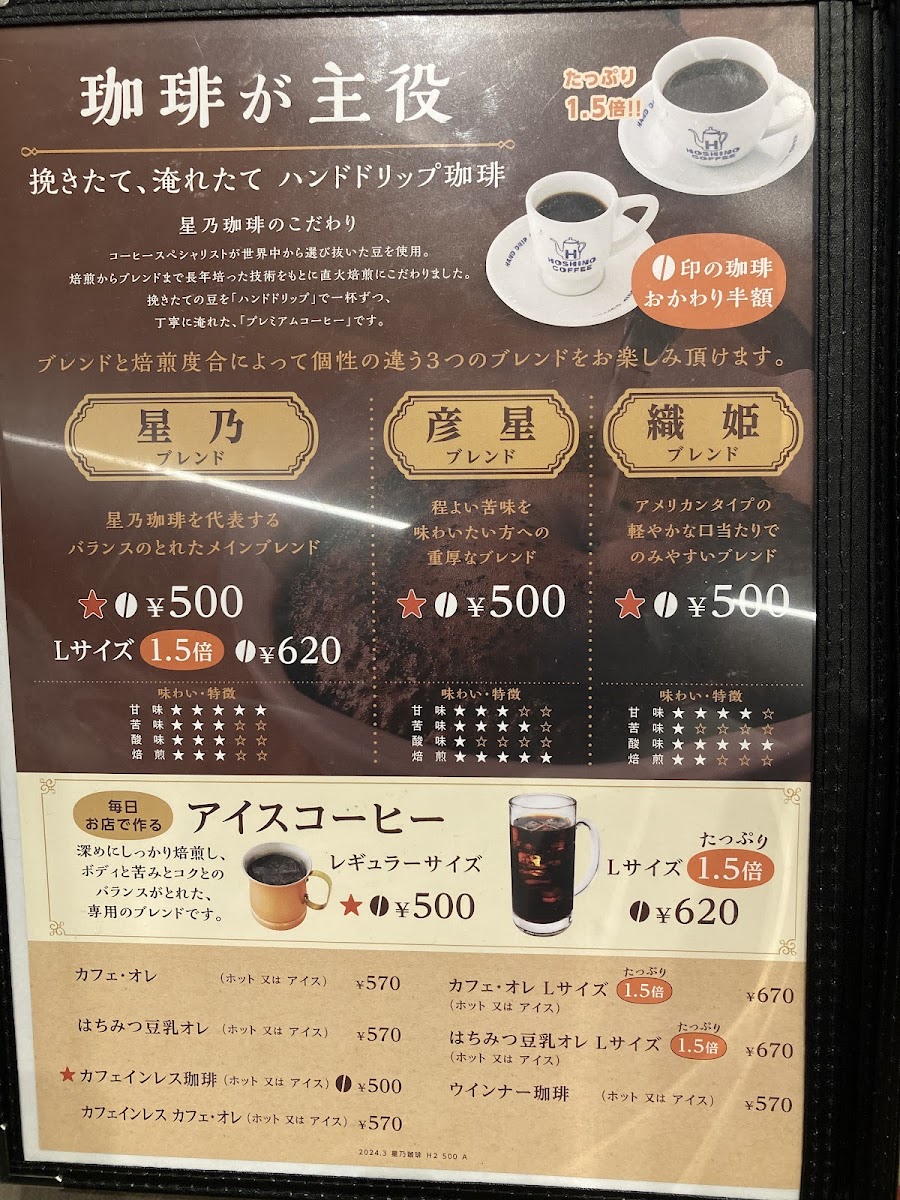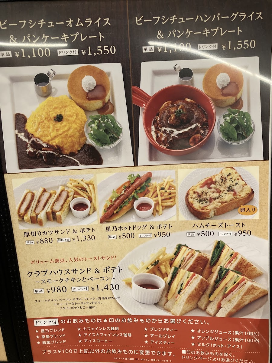 Whether you're visiting for a hearty meal, a light snack, or a sweet treat, Hoshino Coffee's diverse menu caters to a wide range of tastes, all set in a cozy and inviting atmosphere.
