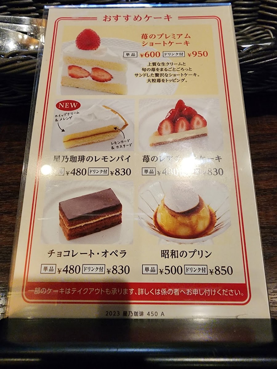 For dessert enthusiasts, the 窯焼きバニラスフレ アングレーズソース is an exceptional option, featuring a baked vanilla soufflé drizzled with a luscious anglaise sauce, which is perfect for those with a sweet tooth. The seasonal 期間限定プレミアムイチゴショートケーキ アイスコーヒー is also a tempting choice, offering a strawberry shortcake that captures the essence of the season's best flavors.